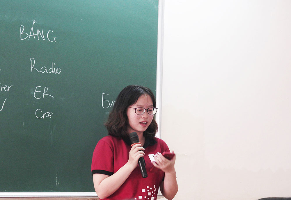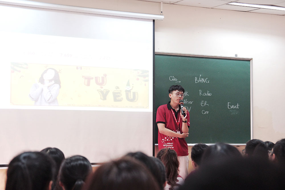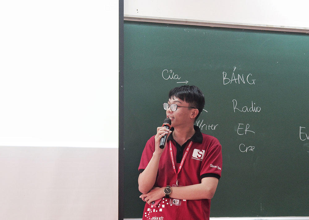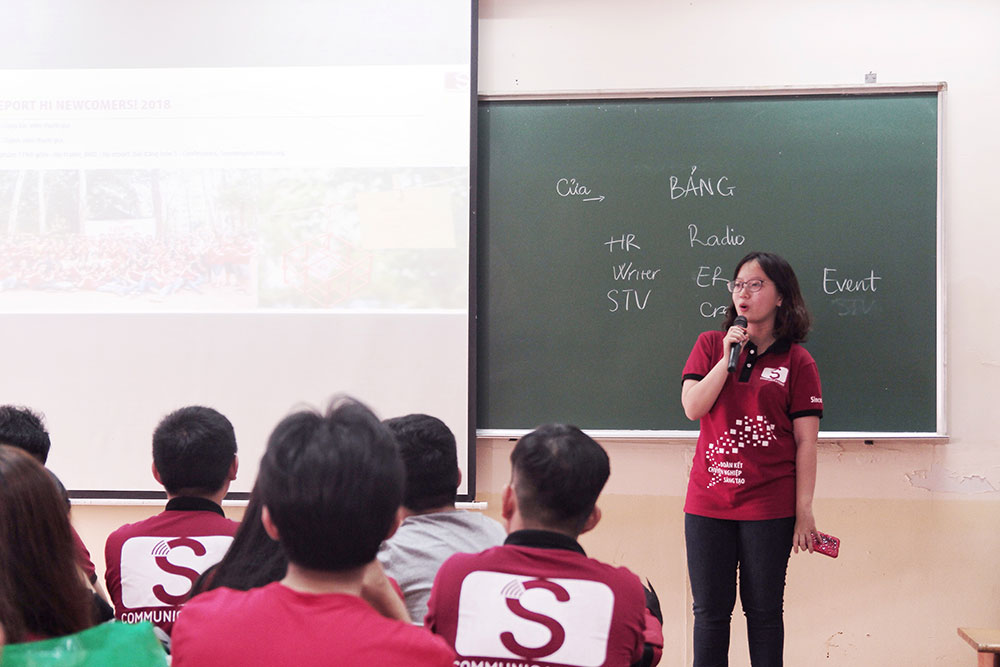 Tiếp nối buổi họp mặt chính là màn giới thiệu hình ảnh của những CTV mới được trình bày bởi chị Ân Vũ – Phó Nhóm Tổ Chức. Sau đó, chị Anh Thi – Trưởng Nhóm S Communications đã phổ biến những thông tin cơ bản để các tân CTV hiểu rõ hơn về Nhóm. Chị đã kể cho các bạn nghe câu chuyện về S Đỏ những ngày đầu tiên, trải qua một quá trình chuyển mình, từng ngày hoàn thiện và phát triển để trở thành S Communications của ngày hôm nay. Qua những lời chia sẻ của chị, 7 gam màu của 7 bộ phận/ekip nhà S đỏ càng thêm rực rỡ hơn trong mỗi TV/CTV.