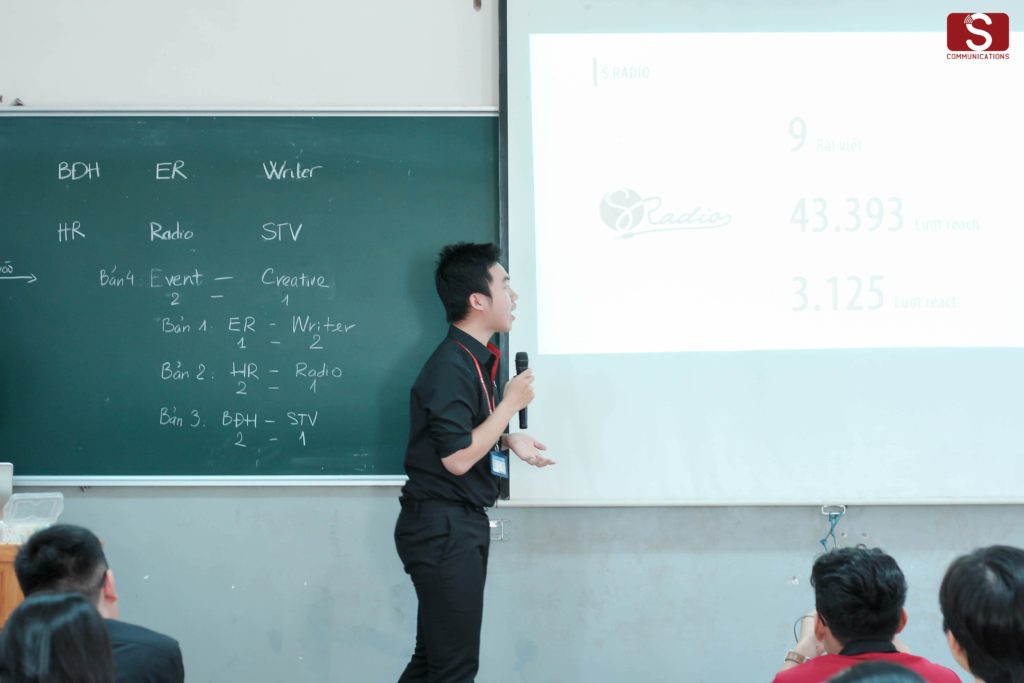Ngay sau đó, anh Minh Vũ cũng đã lên report về số liệu của các fanpage thương hiệu. Trong khoảng thời gian ba tháng vừa qua, ba thương hiệu S Radio, STV và UEHenter đều đã có những kết quả khả quan, số lượng react, chia sẻ và tiếp cận đến mọi người đều tăng cao. Lý giải cho những con số khả quan này, anh Vũ cũng chia sẻ rằng trong thời gian gần đây, chúng ta không chỉ có những bài viết bắt theo “trend” mà còn có những sản phẩm được đầu tư tỉ mỉ, công phu nhằm thể hiện góc nhìn, quan điểm của người trẻ. Do đó, những bức thông điệp tích cực mà chúng ta gửi gắm đến các bạn trẻ ngày càng được nhiều người theo dõi và quan tâm.