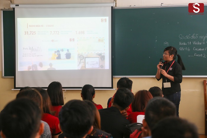 Trong học kỳ mới, Scoms có rất nhiều chương trình, dự án sẽ diễn ra. Đầu tiên, chị Hoàng Quỳnh đến từ Ekip STV – Trưởng chương trình Let’s On Air 2017 đã lên thông báo với mọi người về tình hình Let’s On Air 2017.