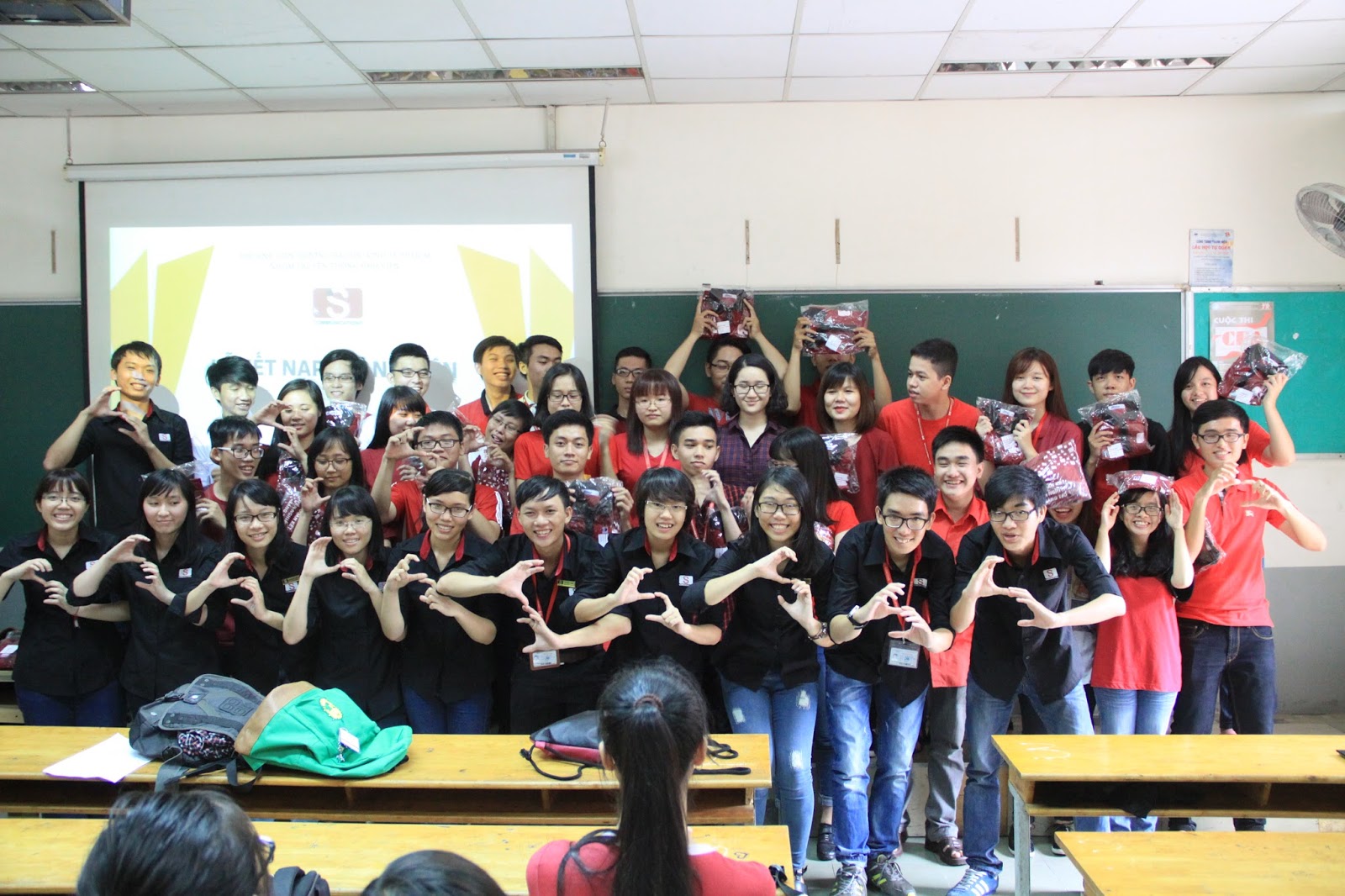Không khí vui vẻ qua đi, tiếp đến có lẽ là phần được các bạn cộng tác viên tháng 10 mong đợi nhất: 35 bạn cộng tác viên được xét tuyển lên thành viên. Tên từng bạn được xướng lên, từng chiếc áo đỏ lần lượt trao tay, cả tấm thẻ thành viên mới toanh – tất cả đều là phần thưởng xứng đáng cho quá trình nỗ lực, cố gắng hết mình sau gần một năm hoạt động. Dường như cái tấm thẻ thành viên chính là điều đặc biệt nhất từ trước đến nay, đến nổi các anh chị thành viên đi trước cũng không thể giấu được sự ghen tị.