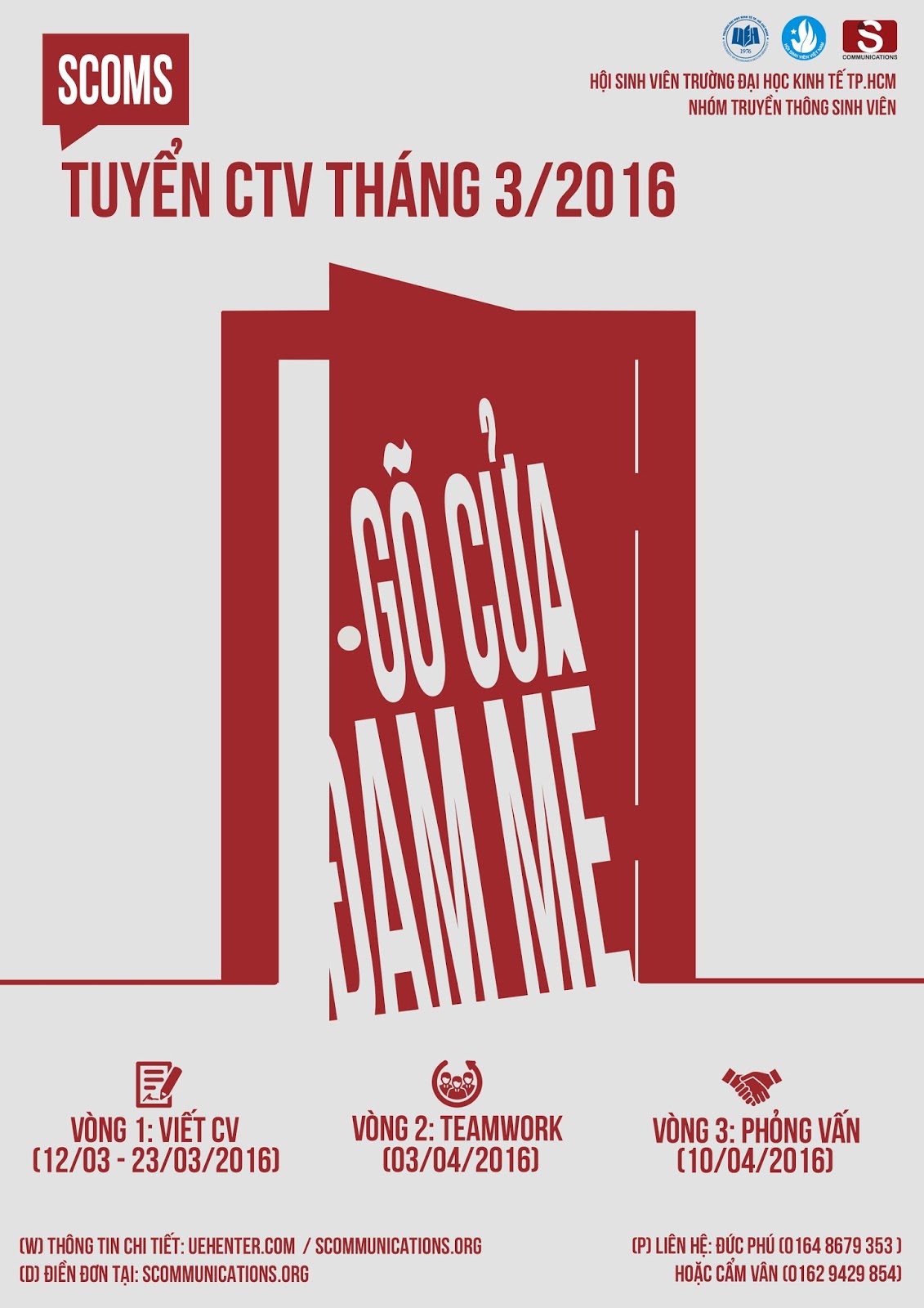 Đam mê – đó là một hành trình trải dài xuyên suốt và không hồi kết, nó là liều thuốc đắt giá nhất để khiến bạn mãi tràn đầy nhựa sống. Hãy thử một lần “gõ cửa” tìm cho mình ngôi nhà phù hợp, nơi có những thành viên đầy nhiệt huyết luôn sẵn sàng cùng bạn “NUÔI DƯỠNG ĐAM MÊ”. Và bạn có nghĩ S Communications chính là ngôi nhà bạn đang tìm kiếm và bản thân bạn là một trong những người Scoms để lạc bấy lâu nay? Hiện tại, Scoms đang mở công cuộc tìm kiếm người thân trên quy mô lớn. Chỉ cần bạn có đam mê về truyền thông và tự tin thể hiện bản thân thì cánh cửa bước vào ngôi nhà S đỏ luôn sẵn sàng chờ bạn gõ cửa. Về với mái nhà chung S đỏ, bạn sẽ không đơn độc khi bên cạnh bạn luôn có những thành viên của Nhóm S Communications kề vai sát cánh, giúp bạn tìm được con đường đúng đắn cho chính bạn.